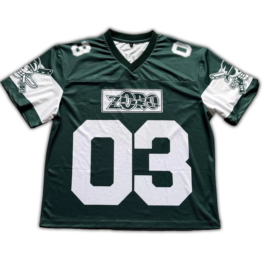 Featuring detailed Zoro artwork with signature green flame accents, this jersey delivers a clean, aggressive look with everyday comfort.